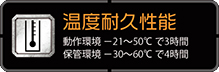 - ※当社試験方法による温度耐久試験をクリアしていますが、全ての動作状態を保証するものではありません。 使用条件および安全面を考慮し、機能を止めたり、電源OFFになることがあります。