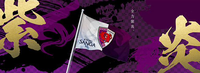 全力紫炎。青い炎のように静かに寄り添い、ときにサポーターとして、赤い炎のように激しく応援。青と赤が混ざり合う“紫炎”で京セラは京都サンガF.C.を“支援”します。