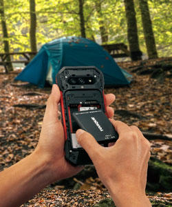 ※1米国国防総省の調達基準(MIL-STD-810H)の21項目に準拠した試験(Blowing Rain(風雨)降雨量1.7mm/min、6方向各30分間の降雨試験、風速18m/s環境下で30分間の降雨試験、Immersion(浸漬)約1.5mの水中に30分間浸漬する試験、Rain Drip(雨滴)高さ1m雨滴(15分)の防水試験、Sand and Dus(t 粉塵)連続6時間(風速8.9m/s、濃度10.6g/㎥)の粉塵試験、Shock(落下)高さ約1.22mから26方向で鋼板に落下させる試験、Shock(衝撃)衝撃試験機に端末を取り付け、40Gの衝撃を6方向から3回与える試験、Vibration(振動)3時間(3方向各1時間/20~2,000Hz)の振動試験、Solar Radiation(太陽光照射)連続20時間1,120W/㎡の日射後、4時間offを10日間繰り返す試験、Humidity(湿度)連続10日間(95%RH)の高湿度試験、High Temperature(高温動作(連続/温度変化)/高温保管(連続/温度変化))動作環境:50℃で連続3時間の動作試験、32~49℃まで3サイクル温度変化させる動作試験、保管環境:60℃で連続4時間の高温耐久試験、30~60℃まで変化させる高温耐久試験、Low Temperature(低温動作/低温保管)動作環境:-21℃で連続3時間、保管環境:-30℃で連続4時間の低温耐久試験、Temperature Shock(温度衝撃)-21~50℃の急激な温度変化で連続3時間の温度耐久試験、Low Pressure(低圧動作/低圧保管)連続2時間(57.2kPa/高度約4,572m相当)の低圧動作/保管試験、Salt Fog(塩水噴霧)連続24時間の5%塩水噴霧後、24時間乾燥させる塩水耐久試験、Freeze-Thaw(凍結-融解)-10℃で結露や霧を発生させ1時間維持し、25℃、95%RHで動作を確認する試験、Icing/Freezing Rain(氷・低温雨)-10℃の冷却水で6mm厚の氷が張るまで氷結させる試験)を実施。 アクティブシーンで活躍するプロたちのドキュメント映像
