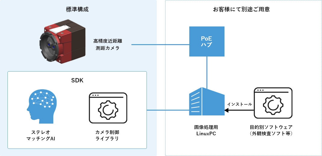 ・カメラ本体は撮像に特化し、高度な演算を外部PCで行う分離設計により、本体の劇的な小型・軽量化を実現しました。