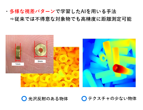 ・多様な視差パターンを学習したAIが、人間の目では難しい複雑な対象物も正確に捉え、生産現場のあらゆる課題に対応します。
