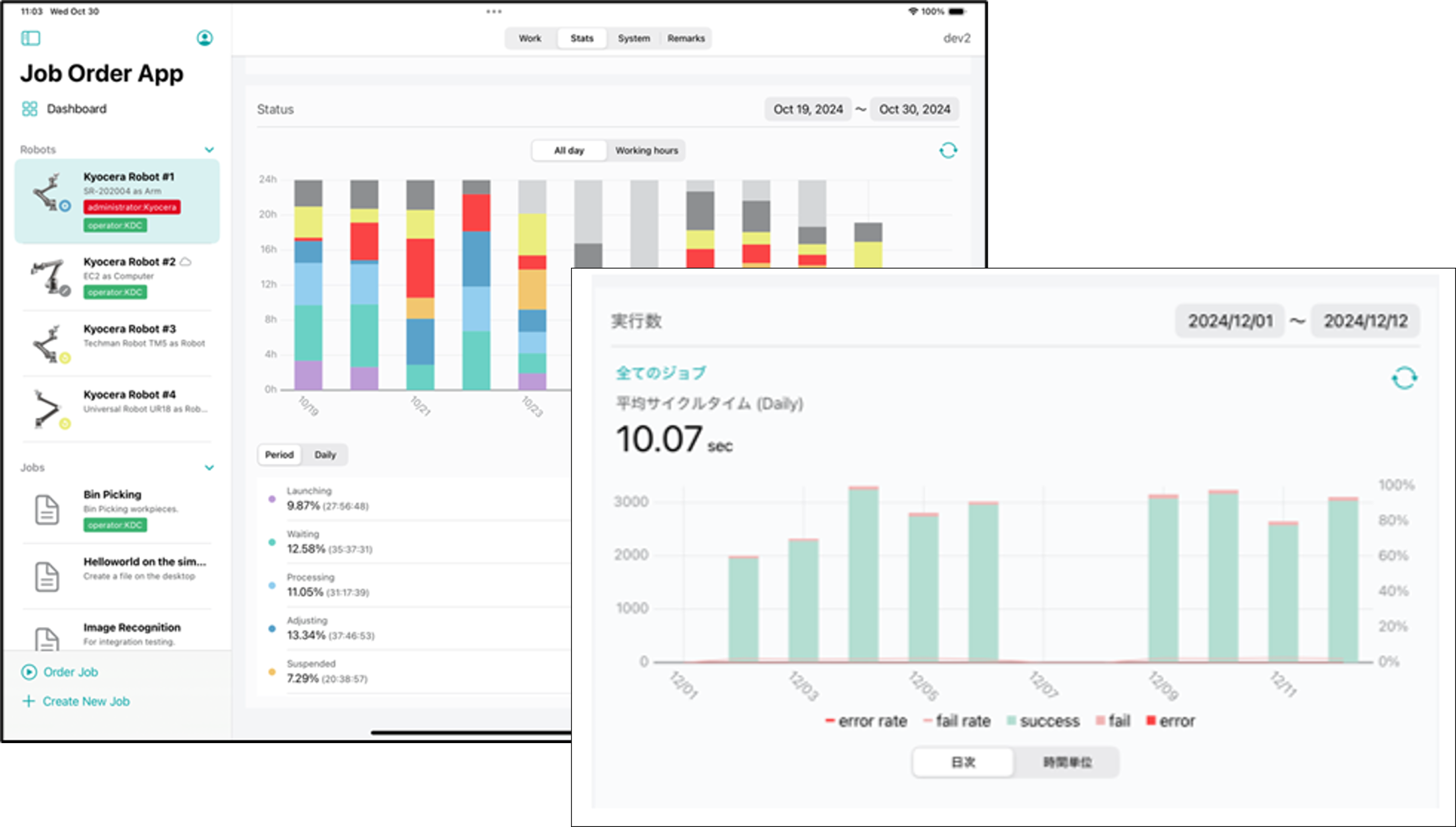 運用ツールを通して、ロボットの稼働状況やエラー通知など運用状況を把握し、トラブルを即検知できるため安心してご利用いただけます。
