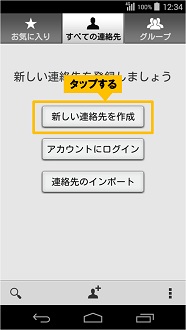 初回利用時は、<新しい連絡先を作成>をタップします。
