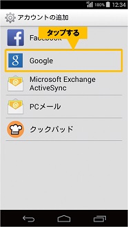 [アカウントの追加]画面が表示されるので、<Google>をタップします。