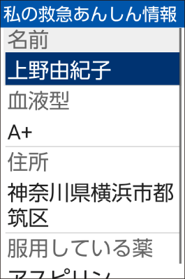 緊急時に見てほしい自分の情報(氏名、生年月日、血液型、かかりつけの病院、持病、アレルギーなど)や緊急連絡先を登録・表示できます。