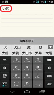 英語キーボードで入力したい文字をタップ→「確定」をタップ