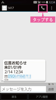 留守番電話にメッセージが届くと、SMSで通知されます。SMSを確認し、「