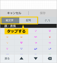 の画面で<絵文字>をタップすると絵文字が、<記号>をタップすると記号が入力できます。