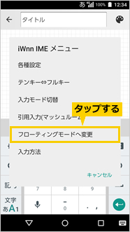 <文字>をタップすると、入力する文字の種類を切り替えることができます。文字種は、日本語→英数字→数字の順で切り替わります。