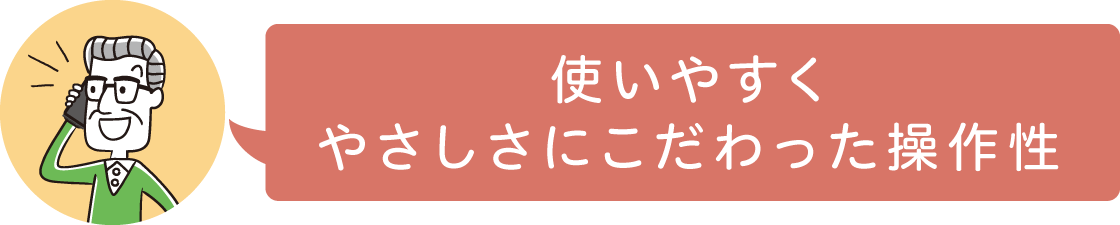 電話やメールの着信時に、ボタンが光ってお知らせ。電話に出るときも切るときもボタンで操作できるのであんしんです。また、持ったときに誤って押すことのないようにデザインされたボタン形状です。