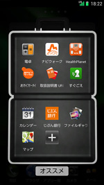 また、出荷時に設定されている標準のホームアプリについては、基本的な機能を配置したシンプルメニューが設定されている。電話帳、ワンセグ、カレンダー、メモ帳、ファイルギャラリーなど、多くのユーザーが頻繁に使う機能が登録されており、すぐに使うことができる。シンプルメニューをオフに切り替えると、横スクロールの複数ページから構成されるメニューが採用されており、ユーザーが慣れるに従って、ホームアプリを自由に切り替えられるように作られたという印象だ。よく使う機能については、URBANO PROGRESSOでも採用されていた「My Selection」が利用できる。自分がよく使うアプリをカテゴリー別にまとめ、4つのデザインから選んだウィジェットとして、ホーム画面に登録できる。