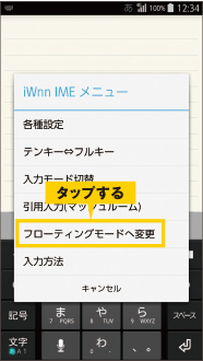 <文字>をタップすると、入力する文字の種類を切り替えることができます。文字種は、日本語→英数字→数字の順で切り替わります。