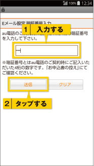 契約時に設定した4桁の暗証番号を正確に入力して、<送信>をタップします。