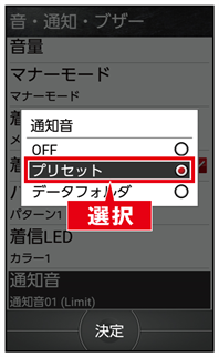 を押します。選択した通知音が設定されます。