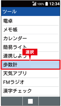 (2) <歩数計>を選択し、