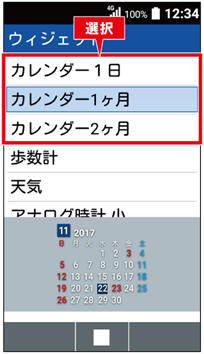 (4) 貼り付けたいウィジェットを選択し、※天気や歩数計なども貼り付けられます。