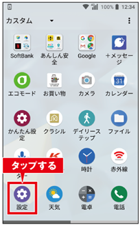 (2) ホーム画面で「アプリ一覧」をタップします。