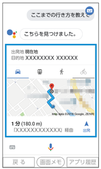 (4) 次に店舗までの行き方を調べます。音声検索キーを強く押します。