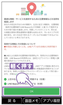 ※同意せずチェックをしない場合も[OK]を軽く押すことができます。