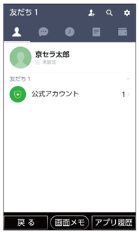 友だちや参加しているグループが表示されます。友だちの追加や検索もこの画面で行います。