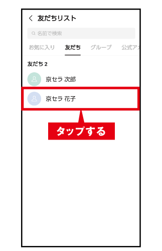(2) メッセージを送りたい相手をタップ。