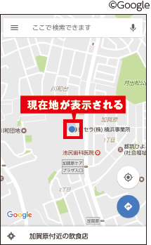 (2) 現在地情報が自動取得されて、地図上に表示されます。