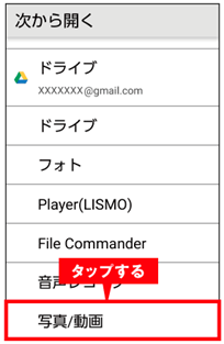 (2)[写真/動画]をタップし、添付したいデータを選択します。