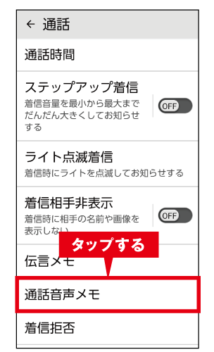 (3) [通話音声メモ]→[通話音声メモリスト]をタップします。