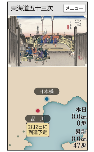 手順(2)の画面で[東海道五十三次]をタップすると、表示形式を東海道五十三次に設定できます。