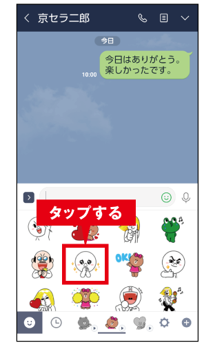 (6) スタンプが大きく表示(プレビュー)されるので、確認してタップします。