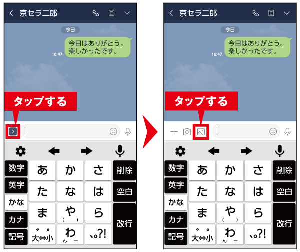 (2) [ホーム]→メッセージを送りたい相手をタップ→[トーク]をタップします。