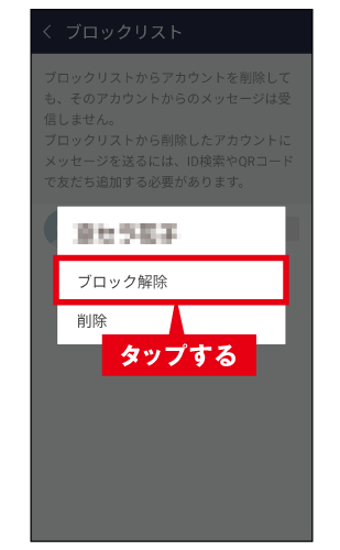 友だちのブロックを解除する場合の画面を掲載しています。
