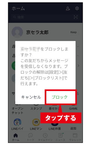 友だちをブロックする場合の画面を掲載しています。