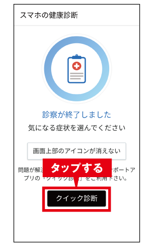 あてはまる症状がなく解決できない場合は、手順(4)の画面最下部の[クイック診断]をタップしてください。