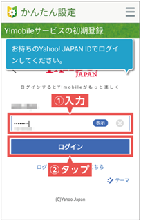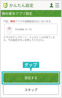 (1) ホーム画面の[Y!mobile]→[かんたん設定]をタップします。