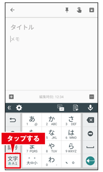 キーボードをタップすると、キーに表示されている文字がそのまま入力されます。