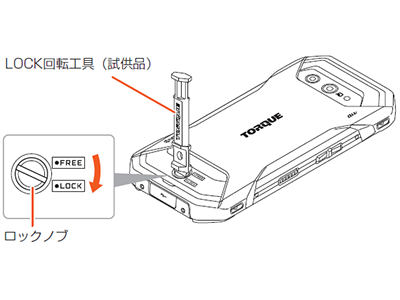 LOCK回転工具(試供品)を使用して、ロックノブを「FREE」の方向に回します。