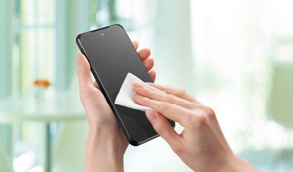 京セラ独自の耐久試験として、消毒用として市販されているイソプロピルアルコール、エタノール、次亜塩素酸ナトリウムを少量含ませた柔らかい布での拭き取り試験を実施しています。イソプロピルアルコール、エタノール、次亜塩素酸ナトリウムは消毒用として販売されているものを、それぞれの取扱説明書をよく読んでお使いください。誤った使い方は人体への影響や引火などの恐れがあります。