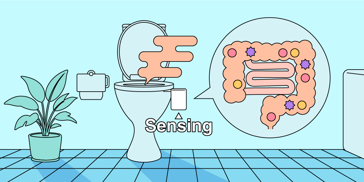 そこで注目されるのが便のにおいです。便のにおいは食べた物、腸内環境(腸内フローラ)により変化し、またその腸内環境は食事、ストレス、病気などで日々変動しています。毎日のトイレで手軽に無意識のうちに腸内環境をチェックできれば、「腸活」をもっと身近で自分に合ったものにできると思います。