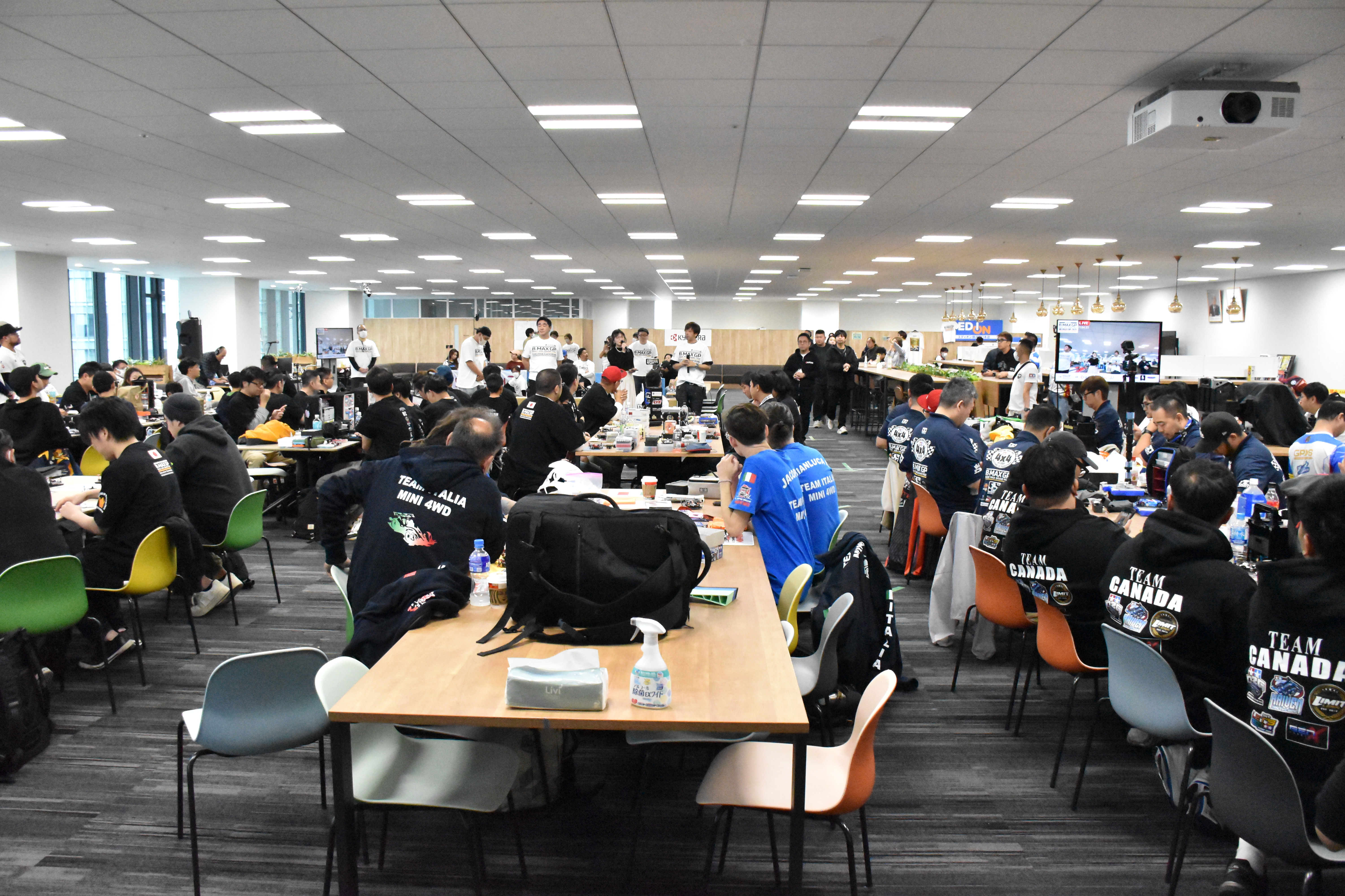 なんと今回は、世界各地から111人のレーサーが参加!チームごとに用意されたピット席だけで、会場の半分ほどを埋め尽くしています。