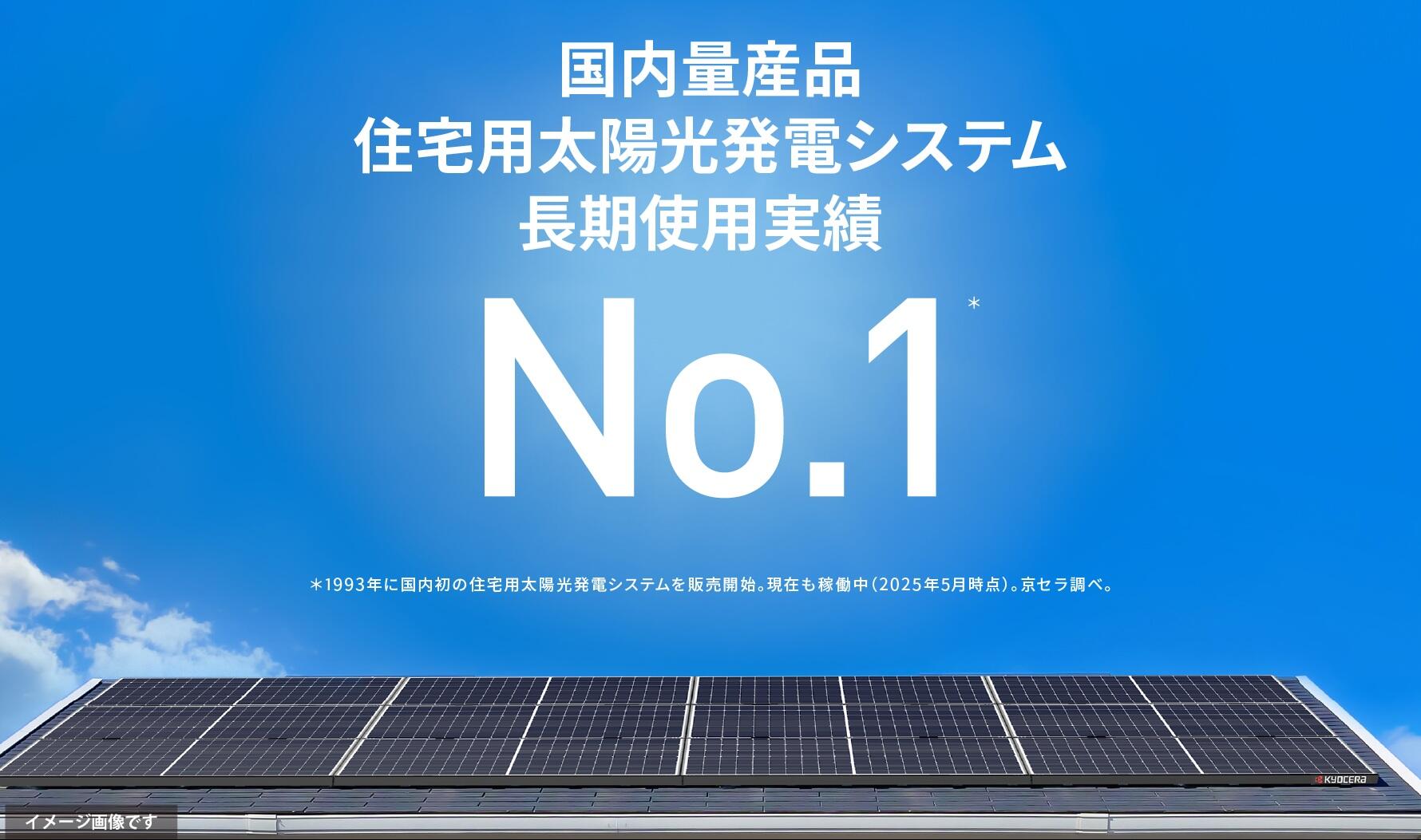 - ※10量産品の住宅用太陽電池の最長使用期間。1993年に国内初の住宅用太陽光発電システムを販売開始。現在も稼働中(2025年5月時点)。京セラ調べ。